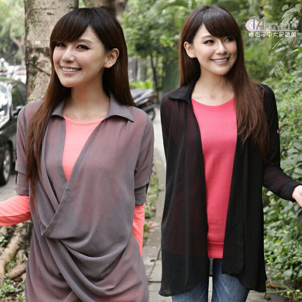 None, ☆糖衣子中大尺碼館【AE16405】韓版秋日輕盈飄逸垂領長版雪紡衫外套。在樂天市場的糖衣子有最棒的商品,是您省錢的最佳選擇。