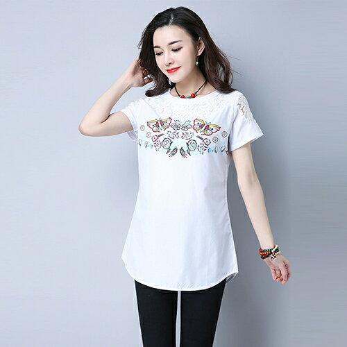 None, 蕾絲拼接印花T恤(2色M~3XL)*ORead*。在樂天市場的OREAD-自由風格有最棒的商品,是您省錢的最佳選擇。